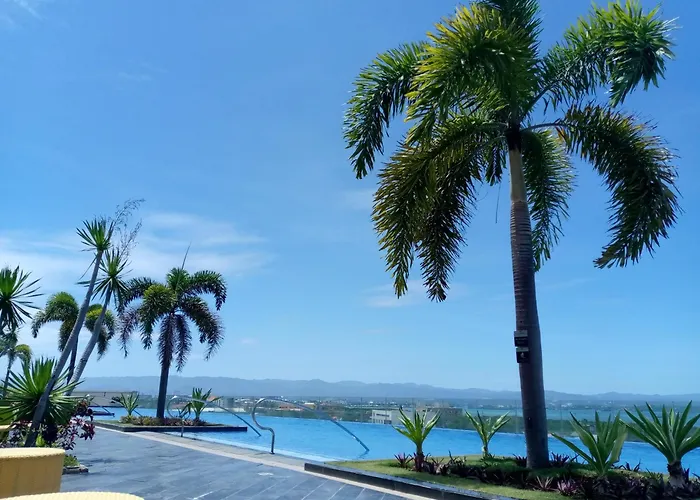 都市の景色を見渡すベッドルーム1室のMactan Newtown 8 Boulevard Punta Engañoアパートは、Punta Engañoのシャングリ・ラ マクタン リゾート&スパ セブから徒歩で18分です。 ラプラプ像少し離れたに位置するこの50m²のアパートで、顧客はプールを利用できます。